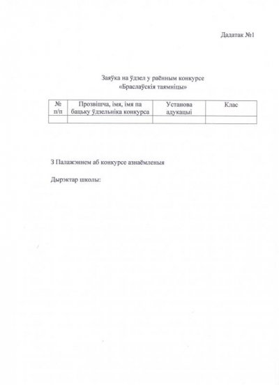 Браслаўскі гісторыка-краязнаўчы музей запрашае навучэнцаў горада і раёна прыняць удзел у конкурсе "Браслаўскія таямніцы". Конкурс прысвечаны да 950-годдзя горада Браслава. Каб больш даведацца пра цікавыя старонкі гісторыі Браслава прапануем выканаць "Мапу пытанняў": 1. З 24 красавіка прыдзіце у гісторыка-краязнаўчы музей і атрымайце "Мапу пытанняў" 2. Выканайце ўсе задачы і старанна запоўніце "Мапу пытанняў". 3. Да 3 мая прынясіце запоўненную "Мапу пытанняў" ў гісторыка-краязнаўчы музей. (г.Браслаў вул. Энгельса 39)