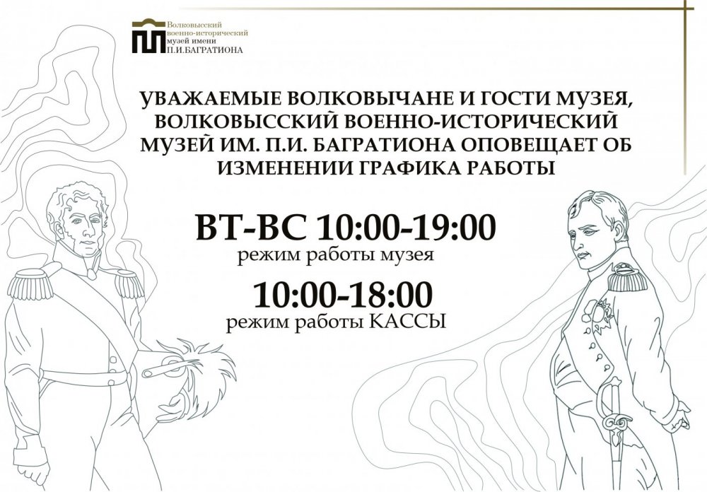 С 1 августа 2025 года в Волковысском военно-историческом музее им. П.И. Багратиона действует новый график работы: